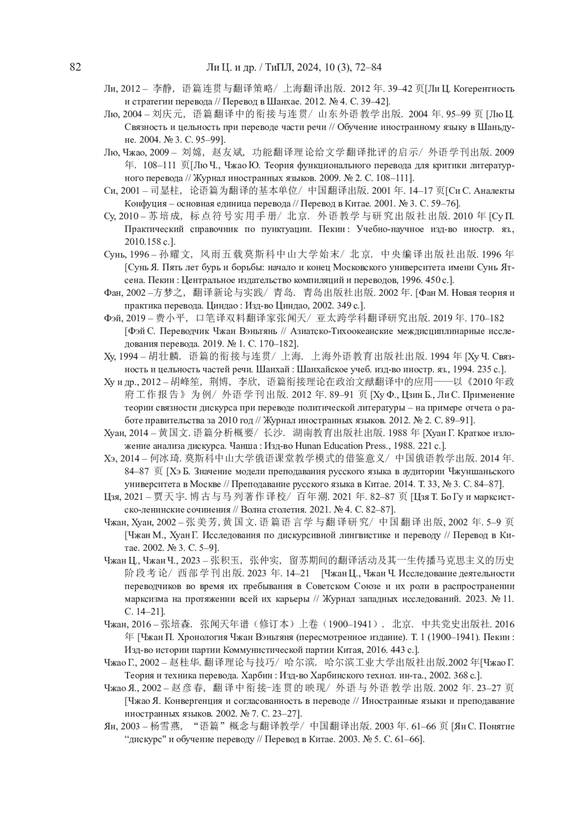 11. Ли, 2012 - 李静, 语篇连贯与翻译策略/ 上海翻译出版. 2012年. 39-42页[Ли Ц. Когерентность и стратегии перевода // Перевод в Шанхае. 2012. № 4. С. 39-42].