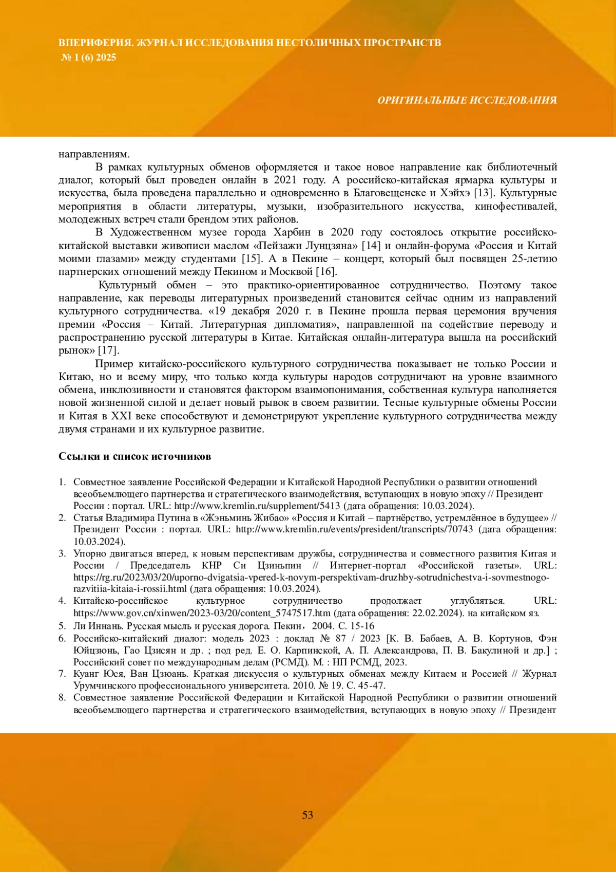 2. Статья Владимира Путина в “Жэньминь Жибао” “Россия и Китай - партнёрство, устремлённое в будущее” // Президент России: портал. URL: http://www.kremlin.ru/events/president/transcripts/70743 (дата обращения: 10.03.2024).
