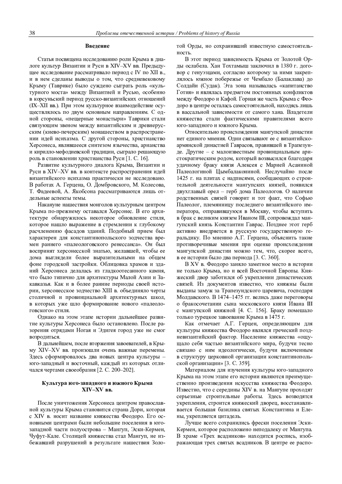 Цель статьи - анализ роли средневекового Крыма в диалоге культур Руси и Византии в XIV-XV вв. Можно выделить два пути влияния византийской культуры на Крым - через Балканские страны (юго-западный Крым) и через Закавказье (восточный Крым). Юго-западный Крым оказался в большей степени подвержен влиянию «палеологовского ренессанса». Сюда проникают идеи исихазма в виде учения Григория Синаита. Но если в IX-XII вв. Крым играл активную роль транслятора идей христианства в культуру Киевской Руси, то в XIVXV вв. культурная жизнь Крыма становится все более зависимой от Московской Руси. Автор заявляет об отсутствии конфликта интересов.