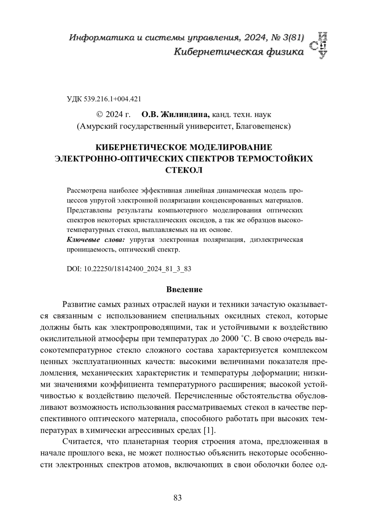 25. Еремина В.В., Жилиндина О.В., Подолько Е.А. Моделирование электронных характеристик электротехнических керамик. I // Информатика и системы управления. - 2020. - № 3(65). - С. 62-73. EDN: INNUUY
