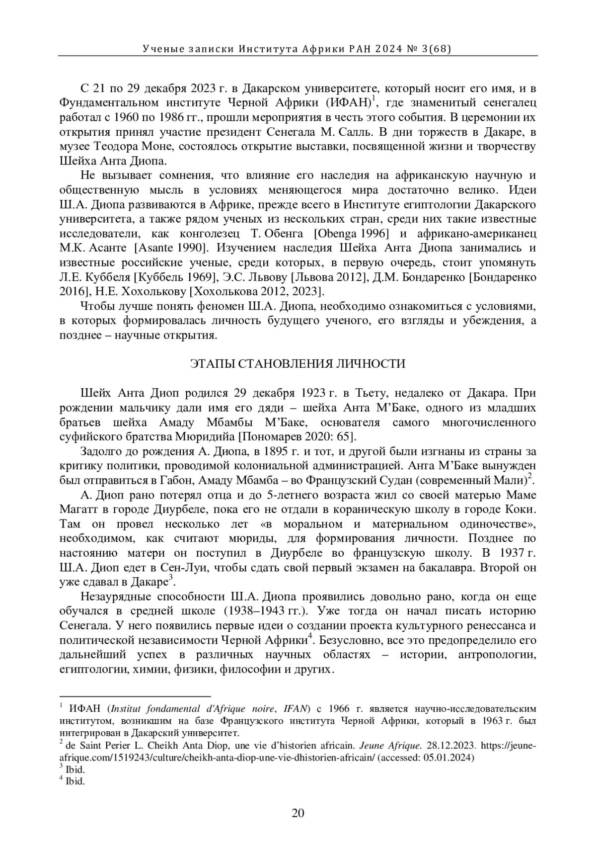 4 Львова Э. С. Диоп Шейх Анта. Давидсон А. Б. (ред.). История Африки в биографиях. М.: Издательство Российского государственного гуманитарного университета, 2012. С. 484–489.