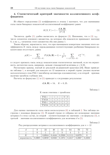 Ключевые фразы: бинарный показатель, статистическая связь, семейство кластерных разбиений, кластерная метрика
