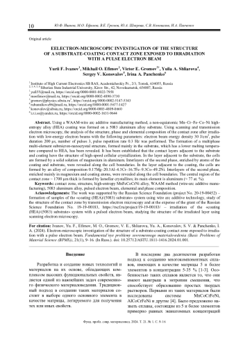 16. Ivanov Yu.F., Gromov V.E., Zagulyaev D.V., Konovalov S.V., Rubannikova Yu.A., Semin A.P. Prospects for the application of surface treatment of alloys by electron beams in state of the art technologies // Progress in Physics of metals. 2020. V. 21, N 3. P. 345-362. EDN: MEXGRT