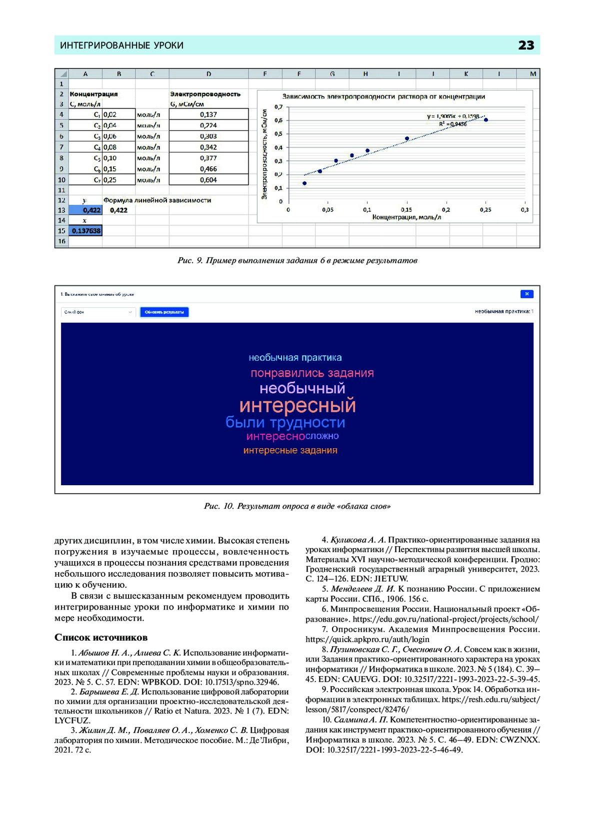 2. Барышева Е. Д. Использование цифровой лаборатории по химии для организации проектно-исследовательской деятельности школьников // Ratio et Natura. 2023. № 1 (7). EDN: LYCFUZ.