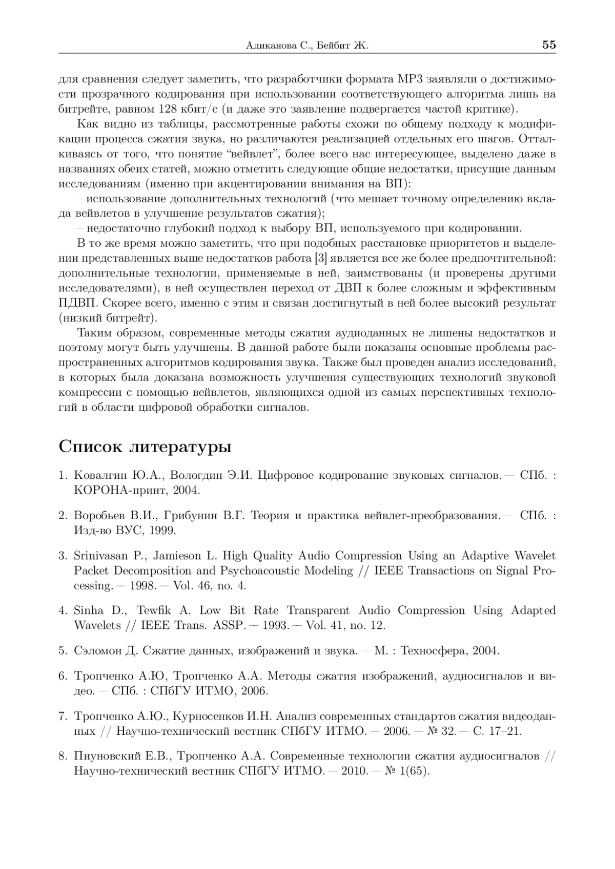 8. Пиуновский Е.В., Тропченко А.А. Современные технологии сжатия аудиосигналов // Научно-технический вестник СПбГУ ИТМО. - 2010. - № 1(65).
