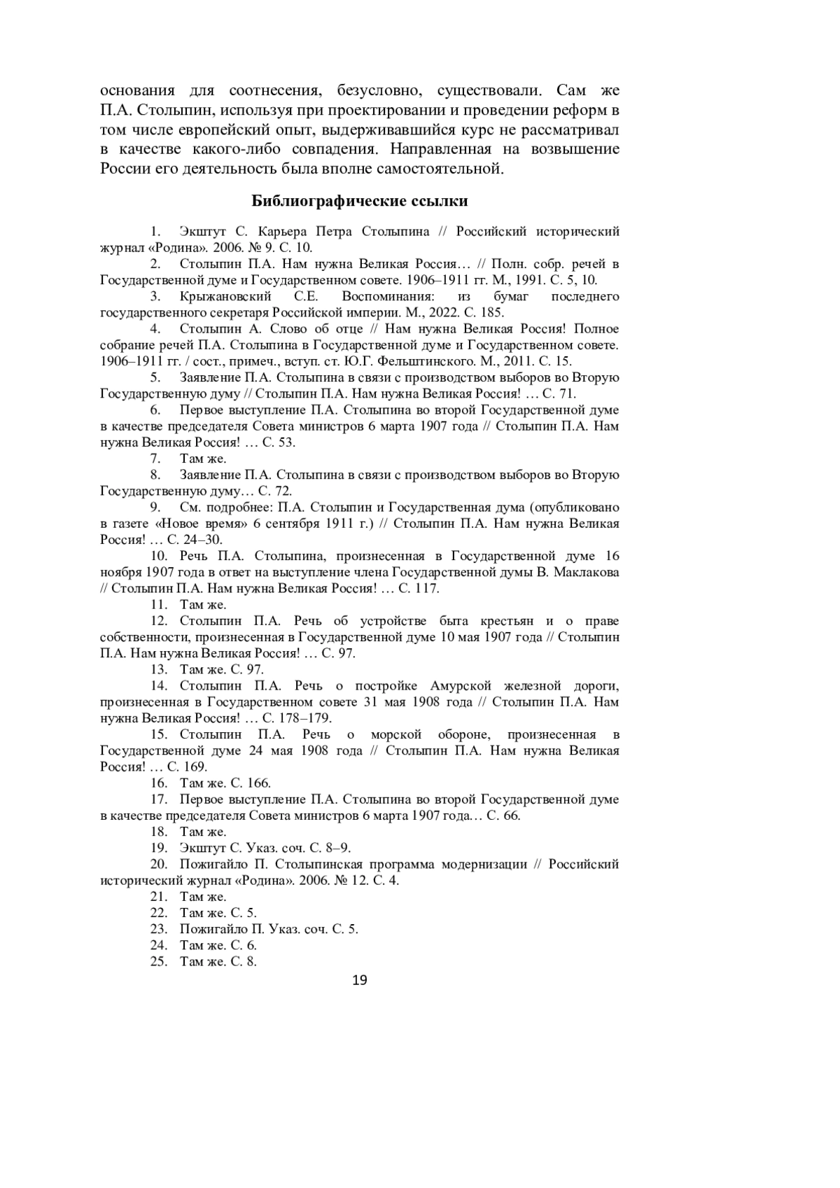 20. Пожигайло П. Столыпинская программа модернизации // Российский исторический журнал «Родина». 2006. № 12. С. 4.