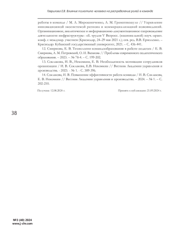 14. Соклакова, И. В. Повышение эффективности работа команды / И. В. Соклакова, Е. В. Некомкин // Вестник Академии управления и производства. - 2024. - № 1. - С. 202-210.