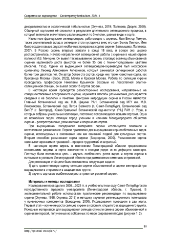 7. Окунева И.Б. Особенности вегетативного размножения сортовой сирени: автореф. дис. … канд. биол. наук. Москва, 1998. 21. https://elibrary.ru/zjlypf 8. Окунева И.Б. Сирень: уход, обрезка, размножения, сорта. М.: Фитон XXI, 2019. 288.