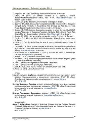 11. Тятюшкина Т.А. Повышение выхода посадочного материала сирени при размножении: автореф. дис. … канд. с.-х. наук. Москва, 2007. 16. https://elibrary.ru/nirrib