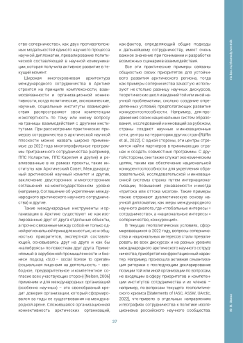 Международное сотрудничество в Арктике – это комплексный многоуровневый процесс, который очерчивает свои контуры на смене исторических парадигм, трансформируясь от модальности триумфа-катастрофы [Sellheim et al., 2019] до модальности сотрудничества-соперничества [Rüffin et al., 2022; Flink, 2020] в различных дискурсах.