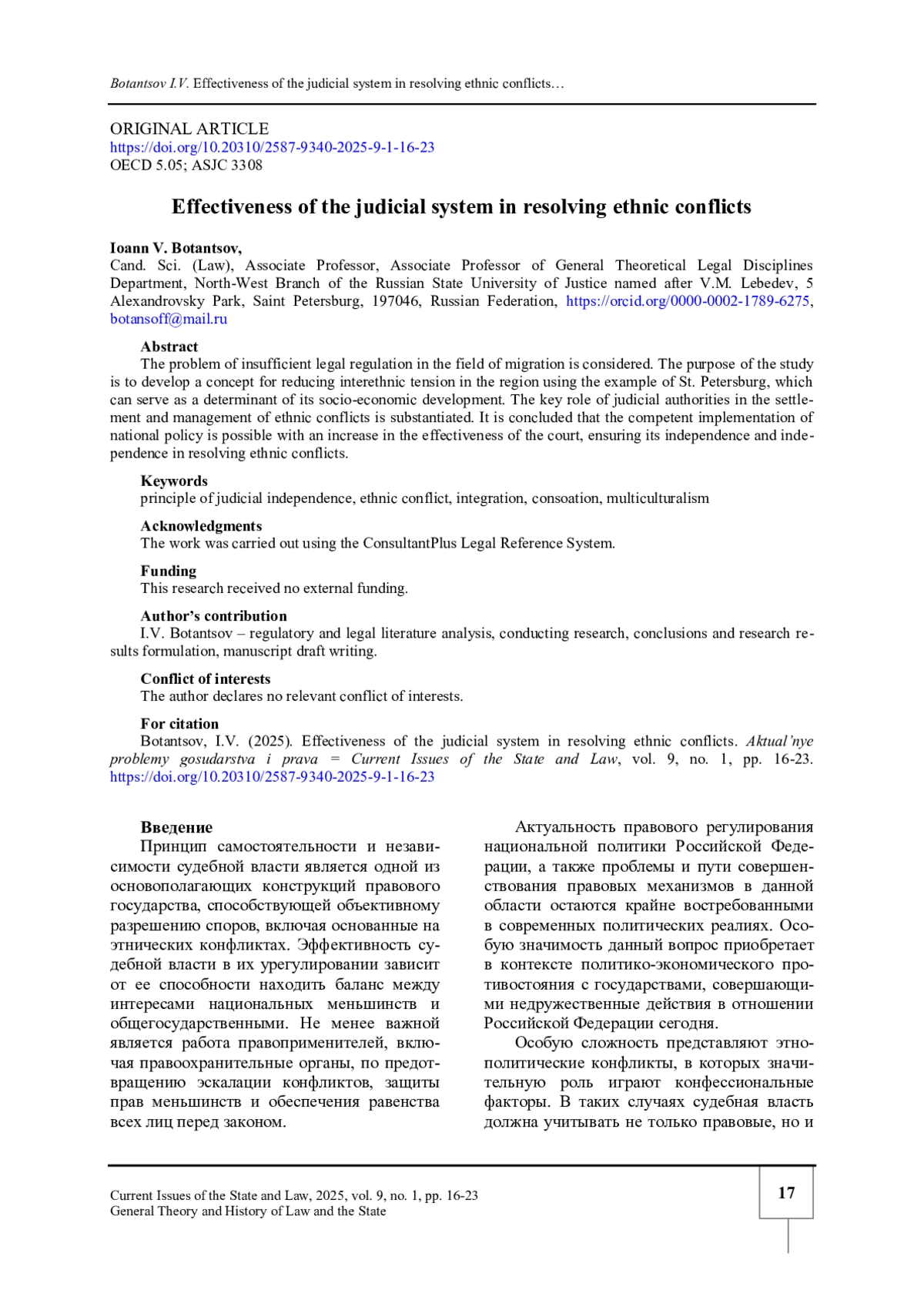 6. Ботанцов И.В. Этнополитика в России: историко-правовой анализ. Санкт-Петербург: “Астерион”, 2020. 162 с. EDN: OYCNSO