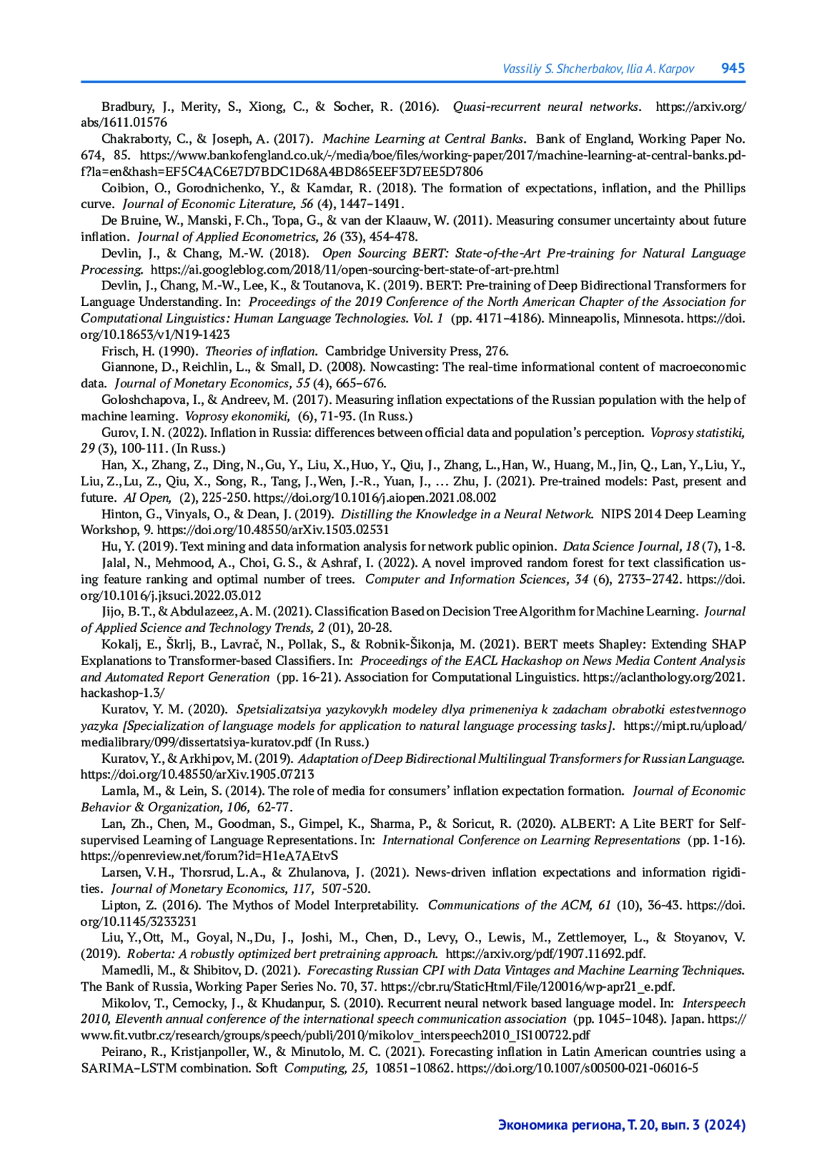 15. Goloshchapova, I., & Andreev, M. (2017). Measuring inflation expectations of the Russian population with the help of machine learning. Voprosy ekonomiki, (6), 71-93. (In Russ.).