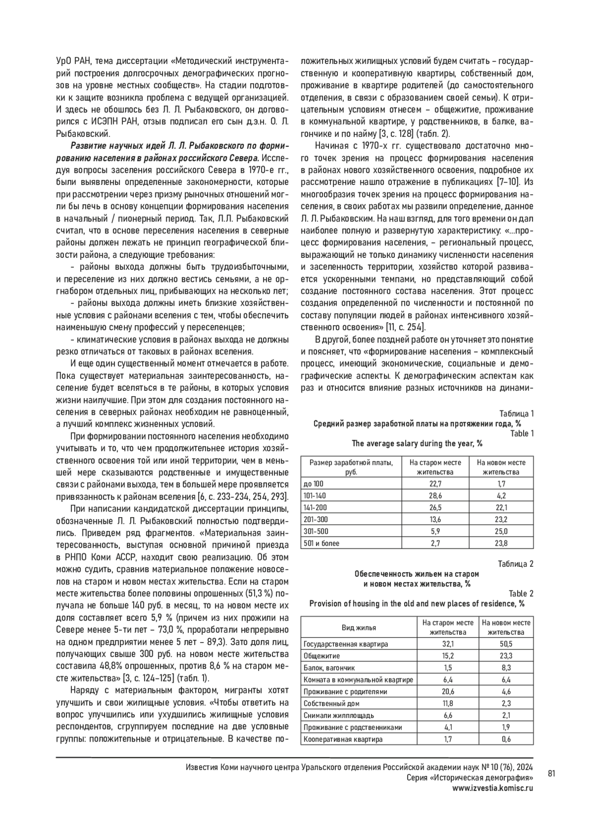 Статья посвящена памяти выдающегося ученого современности - доктору экономических наук, профессору Леониду Леонидовичу Рыбаковскому, внесшему значительный вклад в теорию миграции, мер демографической политики, в оценку демографических потерь в годы политического террора и принудительных миграций. В теоретическом плане особого внимания заслуживает его вклад в исследование колонизации окраинных территорий, где он обосновал, что процессы колонизации имеют четкие временные границы. Началом является время присоединения новой территории, после чего наступает ее заселение колонистами - выходцами из страны, которая захватила или присоединила населенные или прежде пустующие земли к своему государству. Границей окончания процесса колонизации является то время, когда на смену основному компоненту увеличения численности жителей осваиваемой территории - переселению - приходит другой компонент - естественный прирост населения. С этого времени начинается нормальное демографическое развитие и дальнейшее освоение данной территории. Для современного периода развития рассмотрены вопросы формирования населения в районах Севера России, приведена методика оценки демографического неблагополучия по российским регионам, их ранжирование. Особое внимание в статье отведено вопросам подготовки научных кадров для северных регионов России, в том числе и для Республики Коми, указаны фамилии и темы диссертаций аспирантов и ученых, защитивших кандидатские и докторские диссертации в совете Л. Л. Рыбаковского.