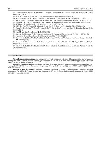 - Панов В. А., Куликов Ю. М., Печеркин В. Я., Василяк Л. М., Савельев А. С. / Прикладная физика. 2023. № 6. С. 5–10.