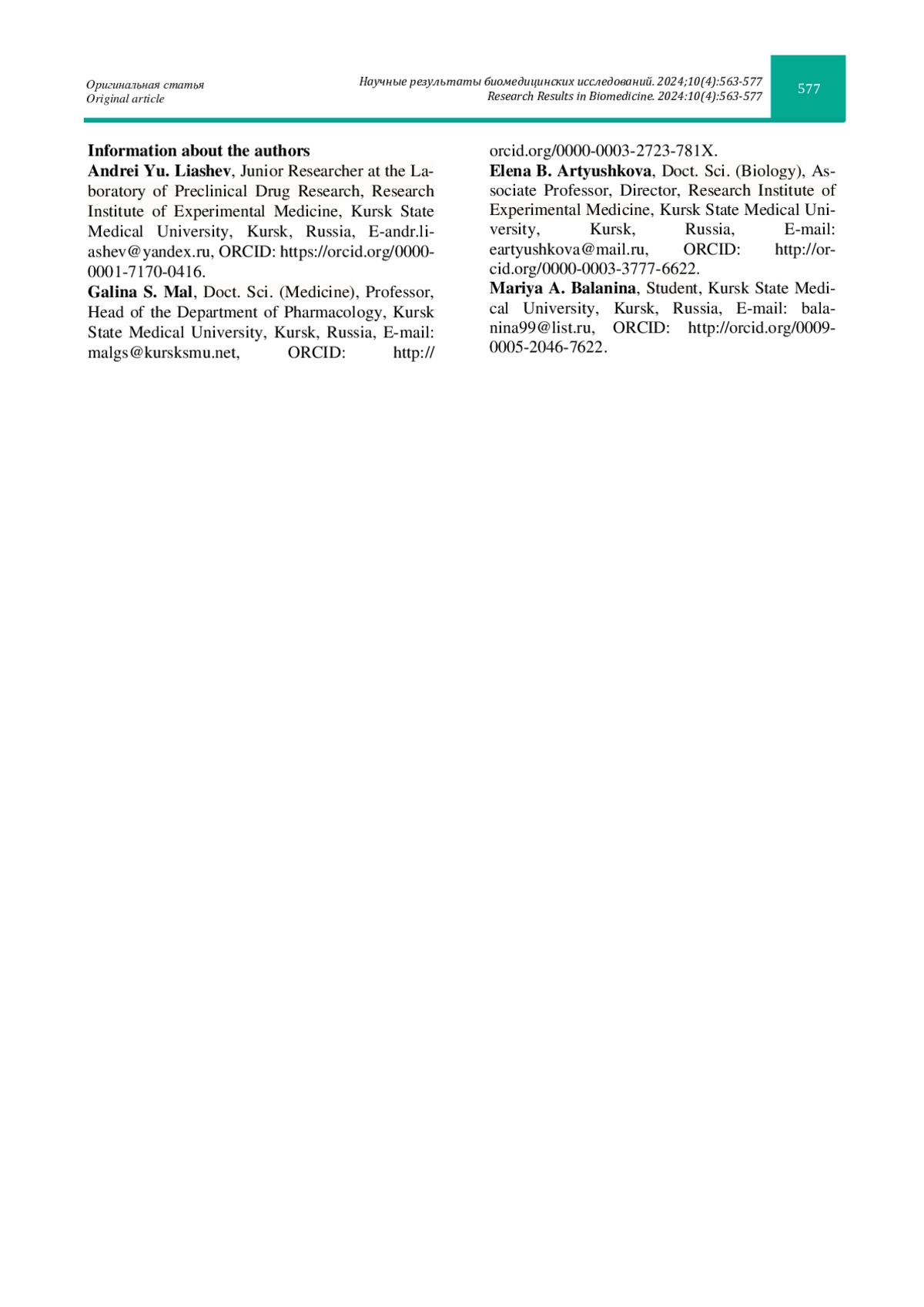 14. Ляшев АЮ, Маль ГС, Солин А В. Изучение эффективности даларгина при экспериментальном язвенном колите. Экспериментальная и клиническая фармакология. 2023;86(9):7-11. DOI: http://doi.org/10.30906/0869-2092-2023-86-9-7- 11