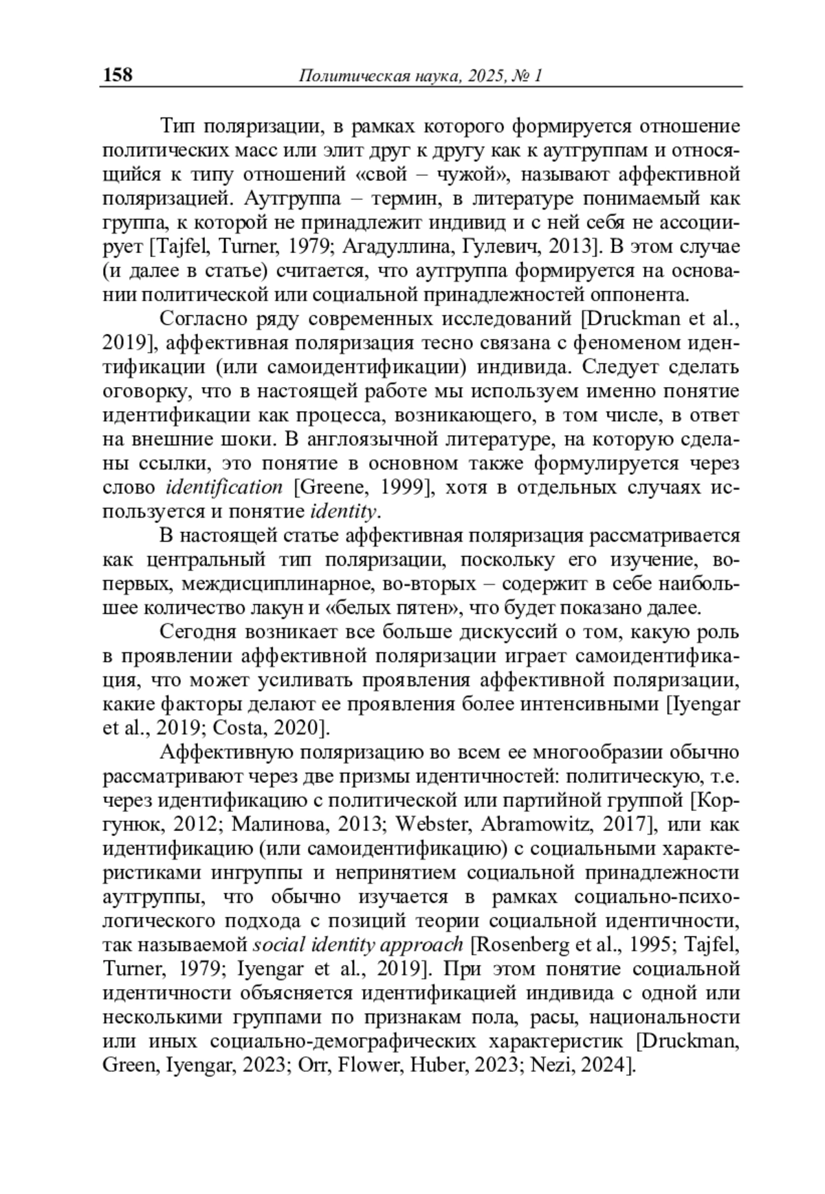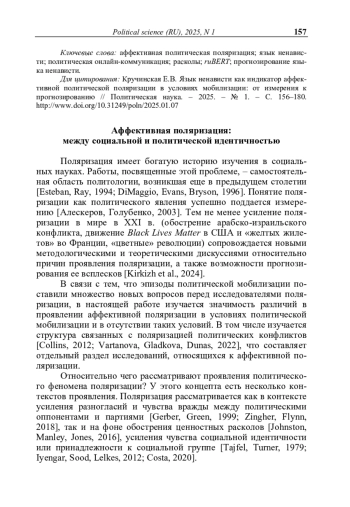 5. Кручинская Е. В. Аффективная политическая поляризация: предложения к операционализации понятия через оценку языка вражды в социальных медиа // Информационное общество. - 2023. - № 3. - С. 97-107.