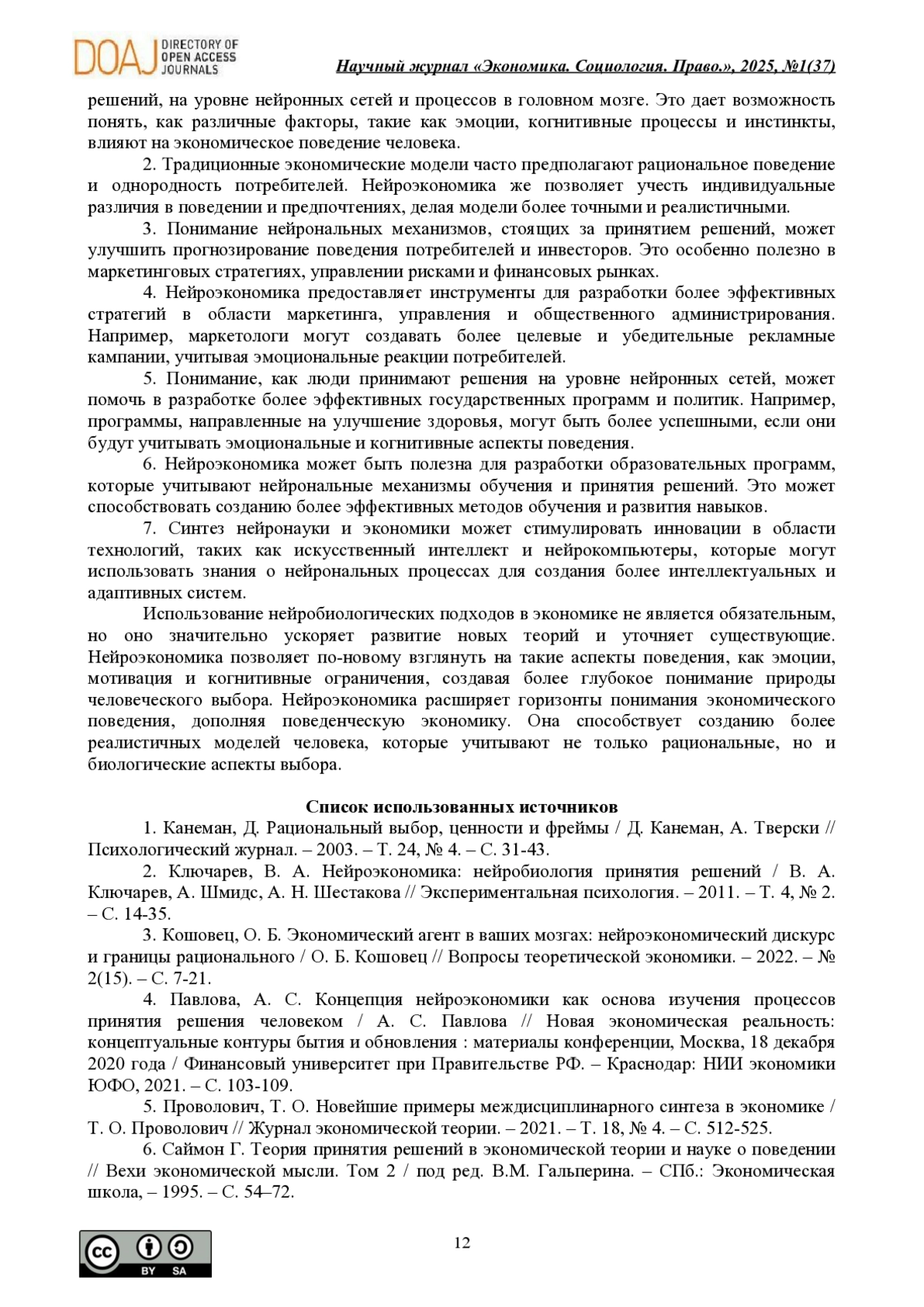 5. Проволович, Т. О. Новейшие примеры междисциплинарного синтеза в экономике / Т. О. Проволович // Журнал экономической теории. - 2021. - Т. 18, № 4. - С. 512-525. EDN: UIVQRS
