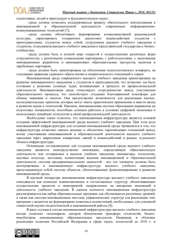9. Шмелева Е. А. Инновационная инфраструктура вуза в подготовке новых кадров // Научный поиск. 2012. № 3. С. 3-6. EDN: PDECLJ