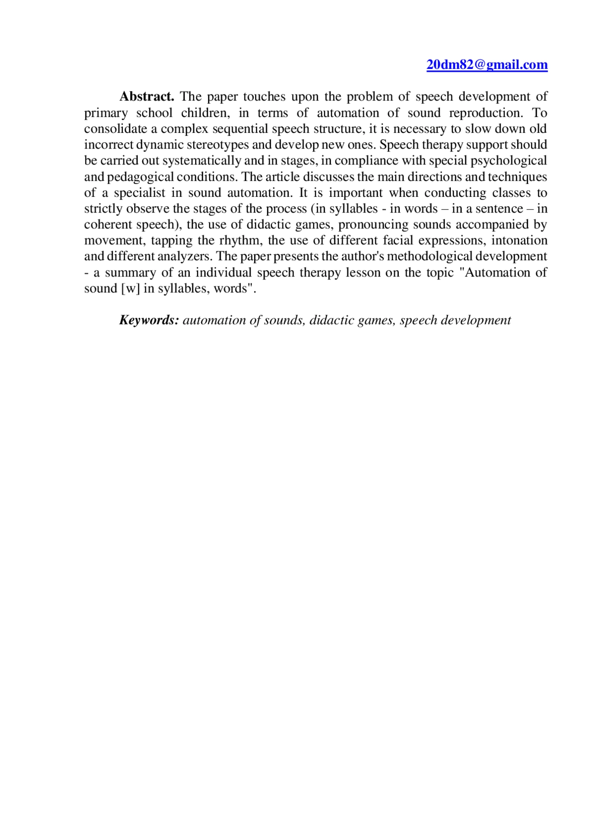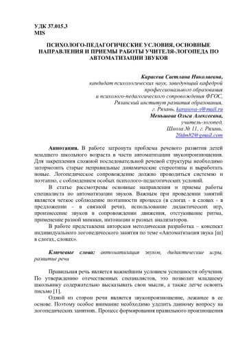 В работе затронута проблема речевого развития детей младшего школьного возраста в части автоматизации звукопроизношения. Для закрепления сложной последовательной речевой структуры необходимо затормозить старые неправильные динамические стереотипы и выработать новые. Логопедическое сопровождение должно проводиться системно и поэтапно, с соблюдением особых психолого-педагогических условий.