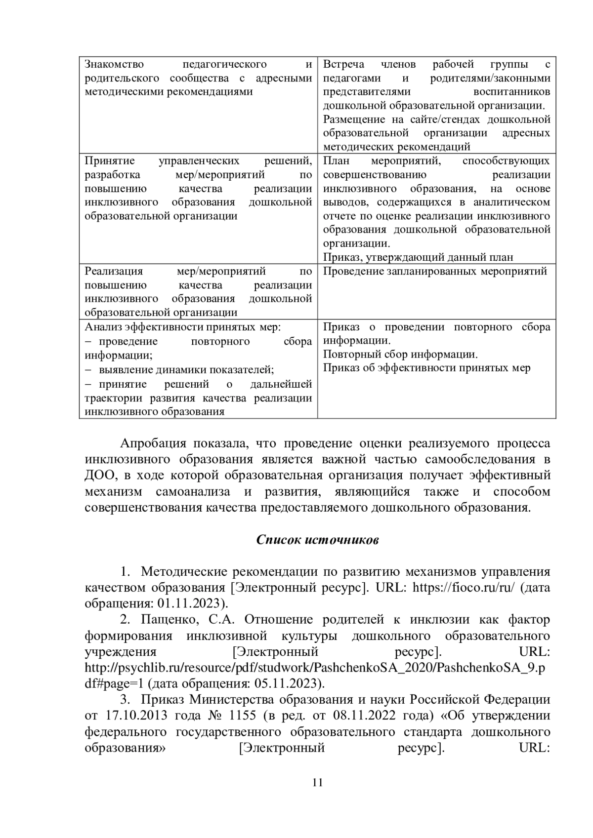 2. Пащенко, С.А. Отношение родителей к инклюзии как фактор формирования инклюзивной культуры дошкольного образовательного учреждения [Электронный ресурс]. URL: http://psychlib.ru/resource/pdf/studwork/PashchenkoSA_2020/PashchenkoSA_9.p df#page=1 (дата обращения: 05.11.2023).