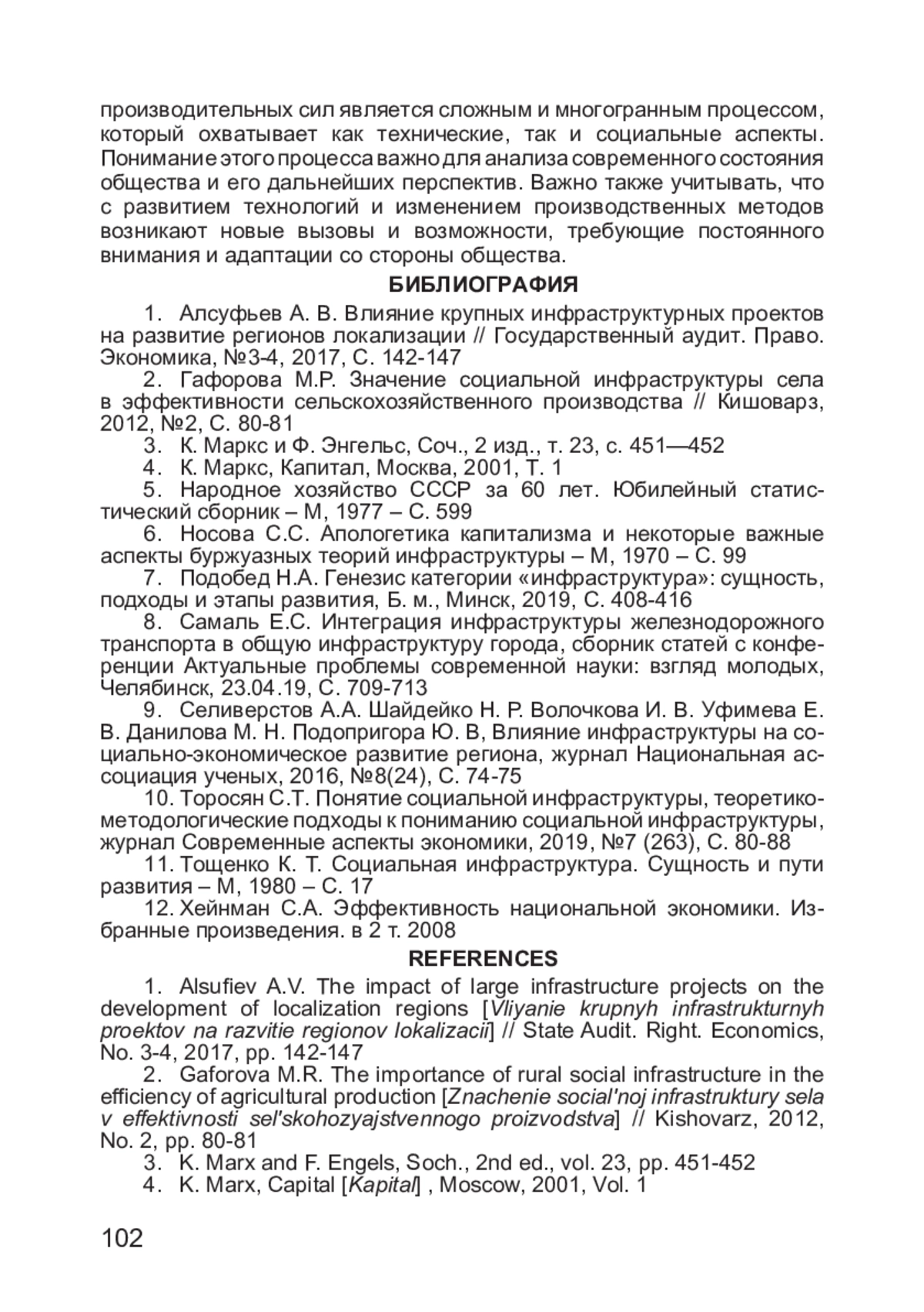 1. Алсуфьев А. В. Влияние крупных инфраструктурных проектов на развитие регионов локализации // Государственный аудит. Право. Экономика, №3-4, 2017, С. 142-147