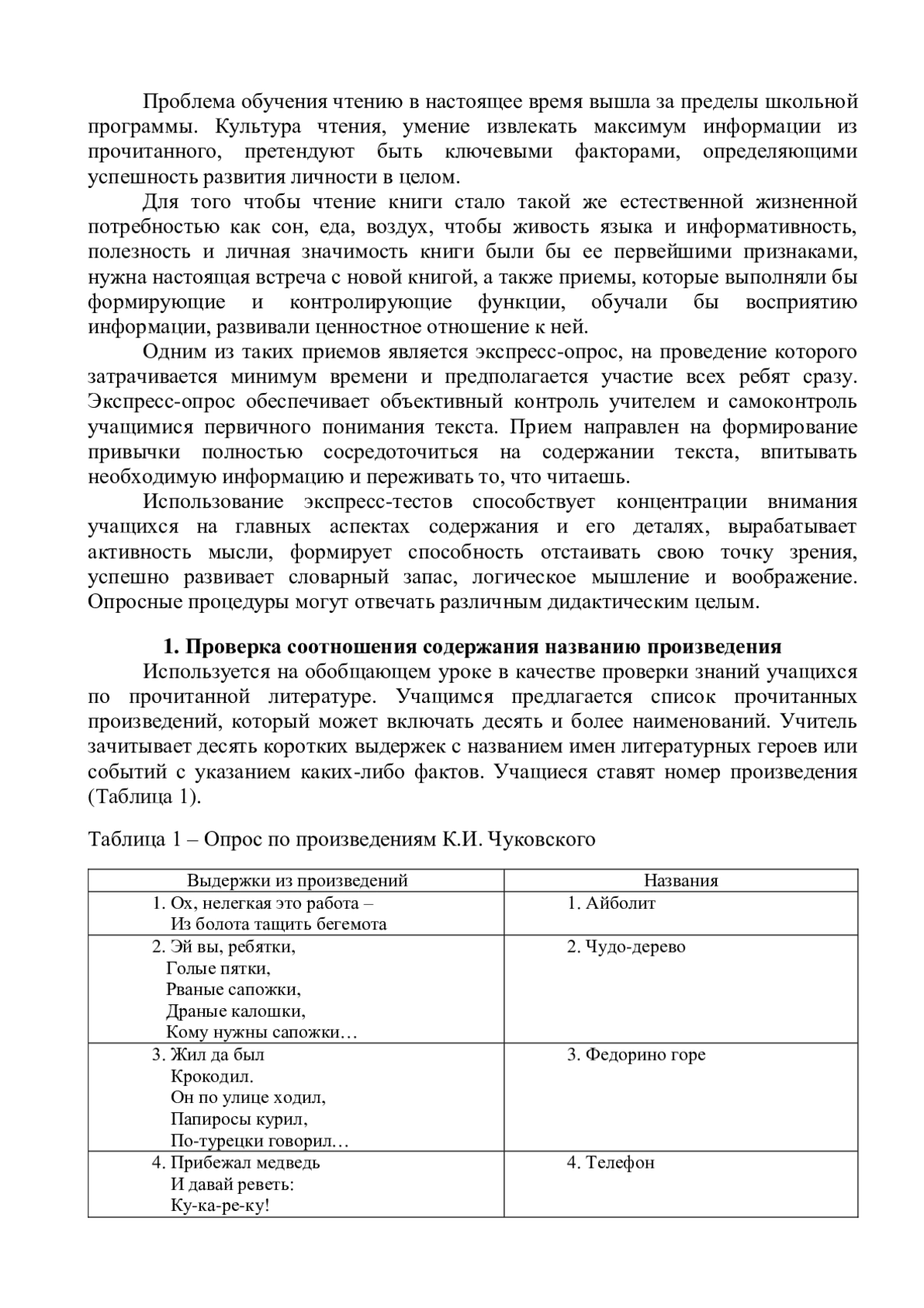 Статья посвящена одному из приемов контроля восприятия информации при первичном чтении. Автор концентрирует внимание на том, что прием формирует привычку полного сосредоточения на содержании текста. Автор показывает на примерах, как работают опросные процедуры, отвечая различным дидактическим целям. Данная статья может быть полезна учителям начальных классов.