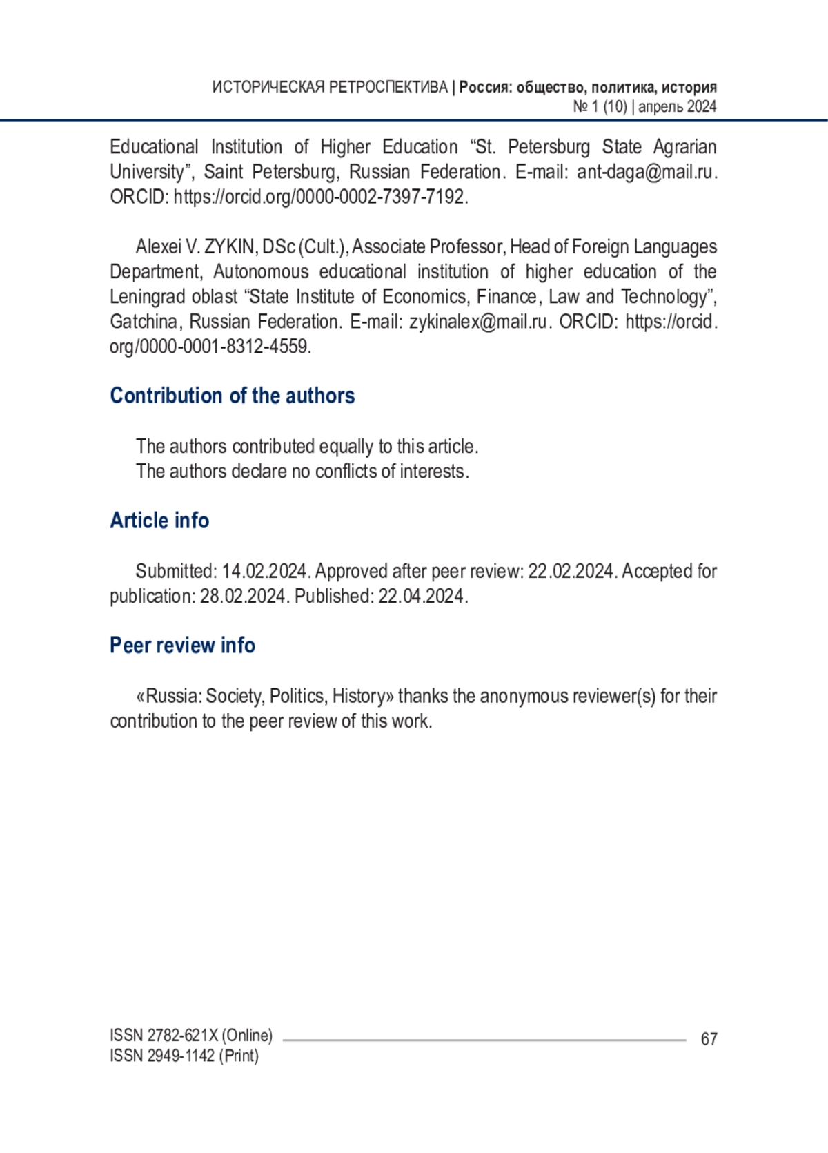 Статья представляет собой вступительное слово главного редактора журнала “Россия: общество, политика, история”