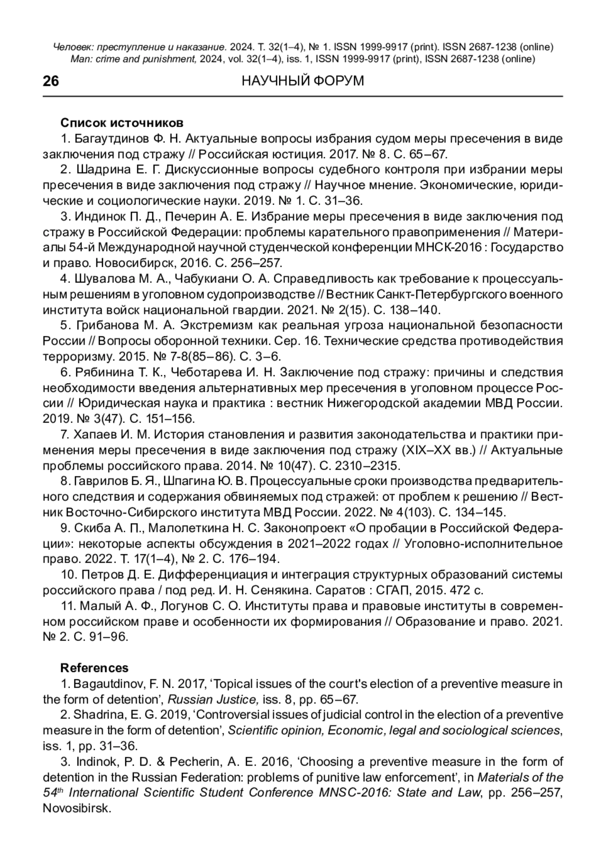 2. Шадрина Е. Г. Дискуссионные вопросы судебного контроля при избрании меры пресечения в виде заключения под стражу // Научное мнение. Экономические, юридические и социологические науки. 2019. № 1. С. 31-36. EDN: ZPTFWP