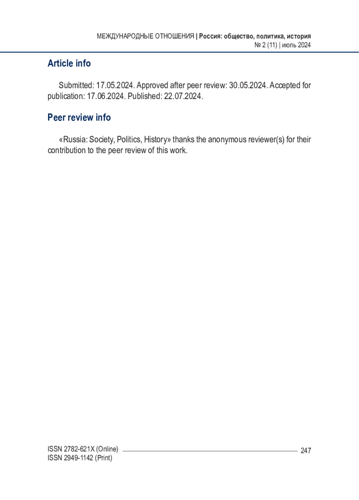 Статья представляет собой вступительное слово главного редактора журнала “Россия: общество, политика, история” Комлевой Валентины Вячеславовны