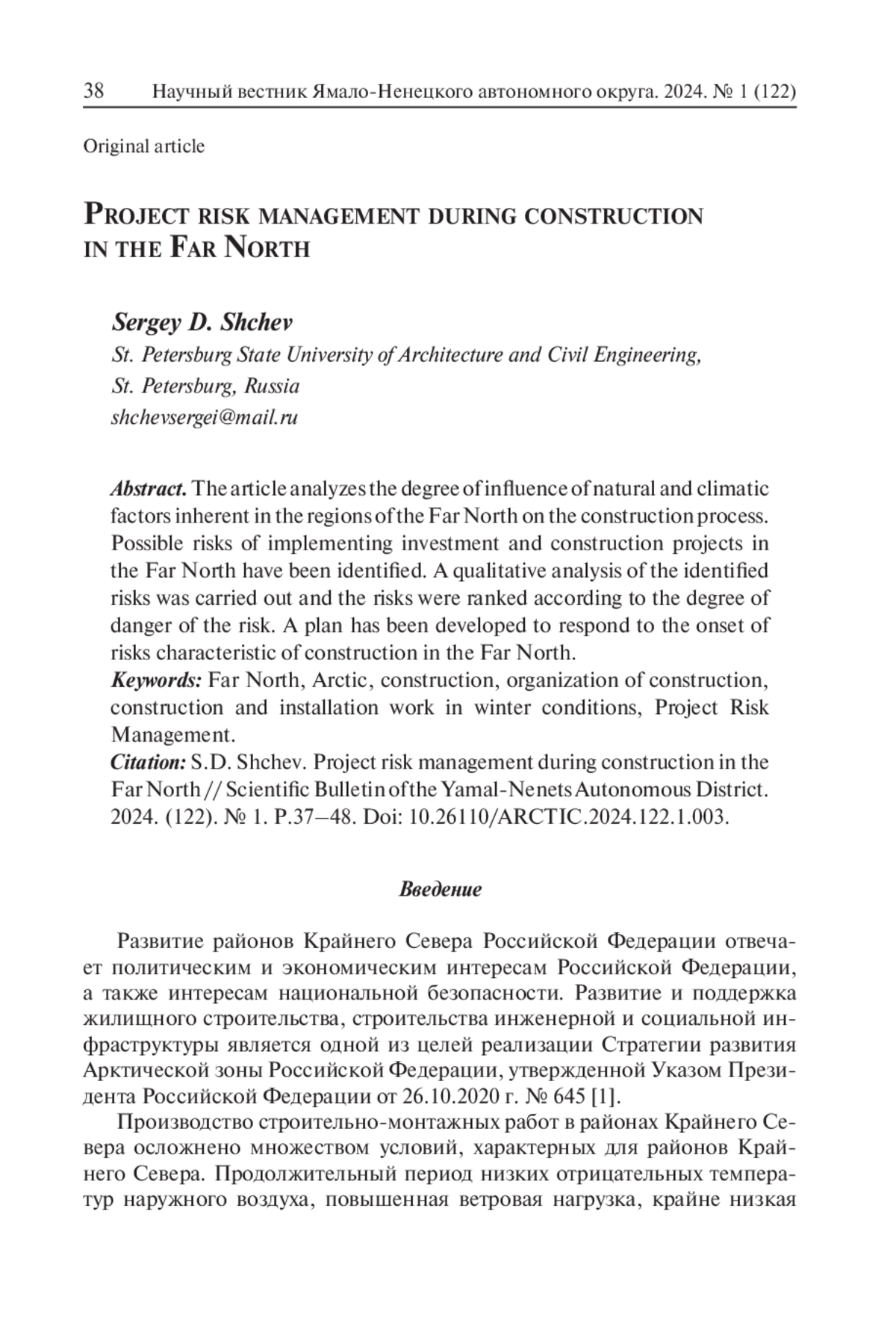 3. Щев С.Д. Анализ факторов, дестабилизирующих календарный график производства работ при строительстве в условиях Крайнего Севера (обзор) / С.Д. Щев // Научный вестник Ямало Ненецкого автономного округа. – 2023. – № 1 (118). – С. 6-24.