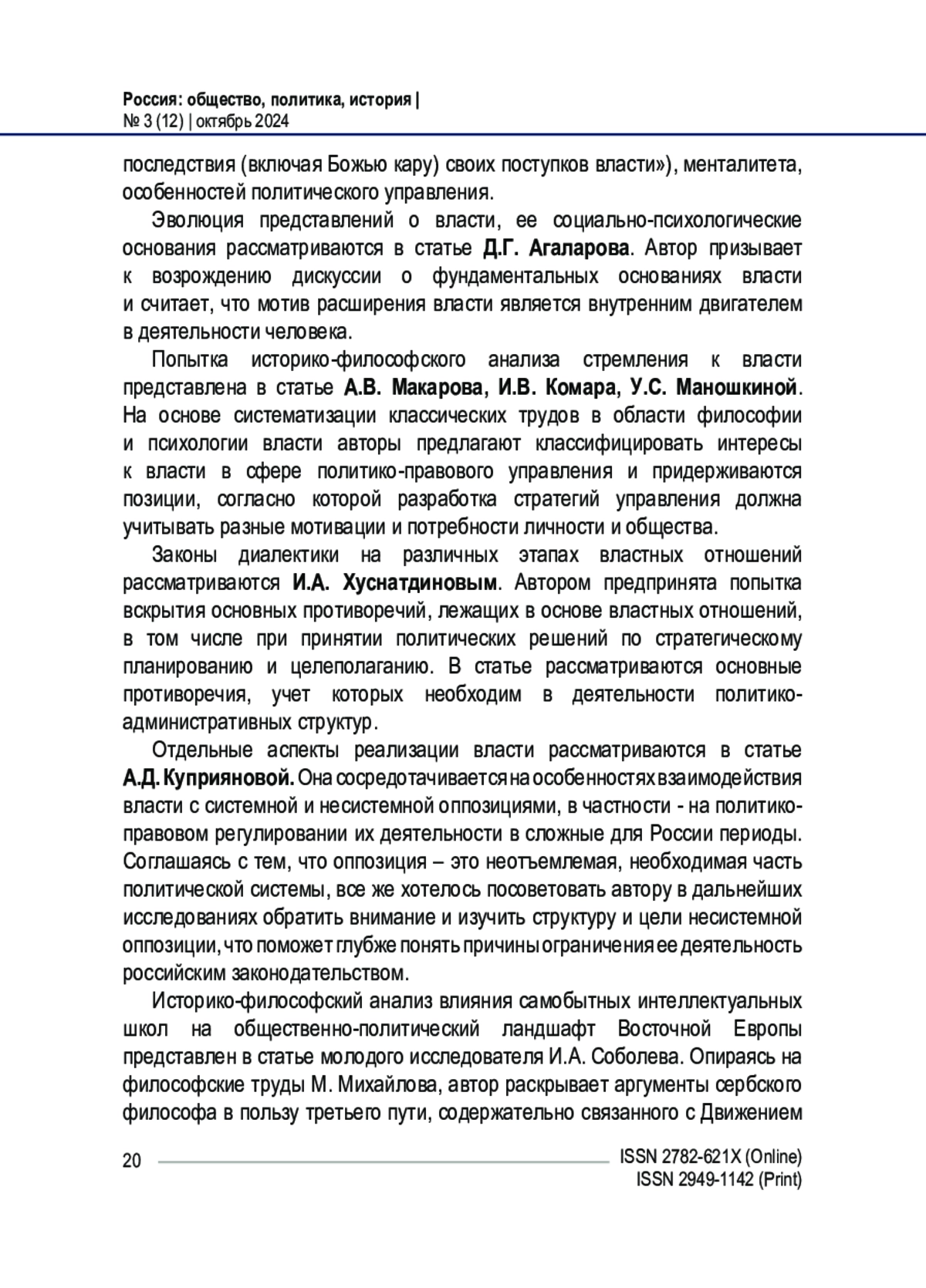Статья представляет собой вступительное слово главного редактора журнала “Россия: общество, политика, история” Комлевой Валентины Вячеславовны