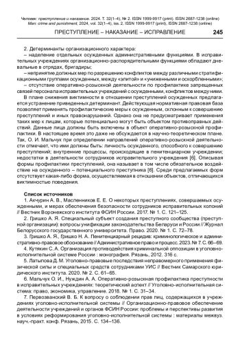 1. Акчурин А. В., Масленников Е. Е. О некоторых преступлениях, совершаемых осужденными, и мерах обеспечения безопасности сотрудников исправительных колоний // Вестник Воронежского института ФСИН России. 2017. № 1. С. 121-125. EDN: ZDOPWF