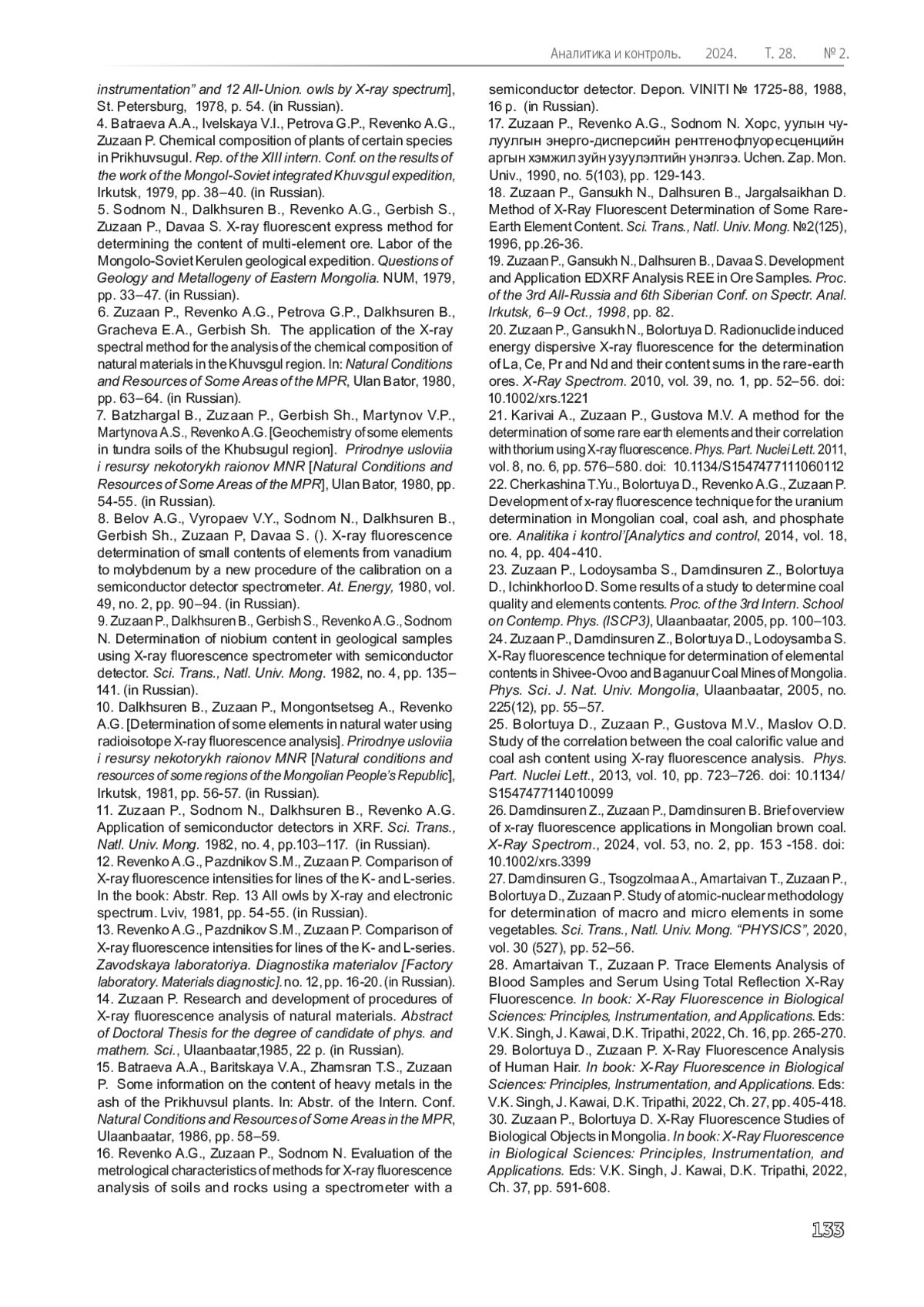26. Damdinsuren Z., Zuzaan P., Damdinsuren B. Brief overview of x-ray fluorescence applications in Mongolian brown coal // X-Ray Spectrom. 2024. V. 53, № 2. P. 153 - 158. EDN: FGUPWK