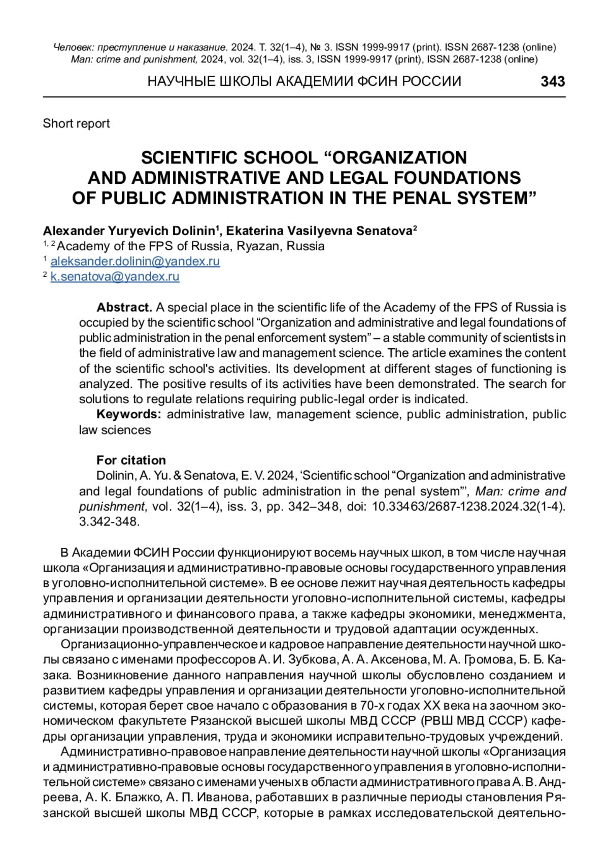 1. Павлова Л. В., Панин Ю. И. 20-летие кафедры административного и финансового права Академии ФСИН России // Административное право и процесс. 2022. № 4. С. 7-12. EDN: DAOKPG