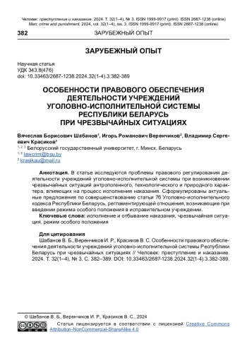 3. Шабанов В. Б., Красиков В. С. Организационно-правовое обеспечение предупреждение правонарушений в учреждениях уголовно-исполнительной системы // Петербургские пенитенциарные конференции: сб. материалов комплекса междунар. науч.-практ. конф.: в 2 т. СПб., 2023. Т. 1. С. 189-196. EDN: TDSBVY