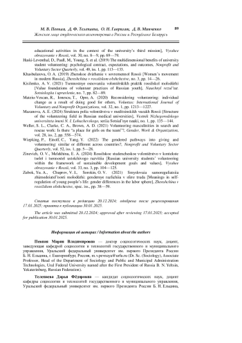 - Wiepking P., Einolf C., Yang Y. The gendered pathways into giving and volunteering: similar or different across countries? // Nonprofit and Voluntary Sector Quarterly. 2022. Vol. 52, iss. 1. P. 5—28.