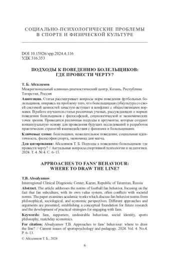 13. Russell J. S. The ideal fan or good fans? //Sport, ethics and philosophy. 2012. V. 6. №. 1. P. 16-30.