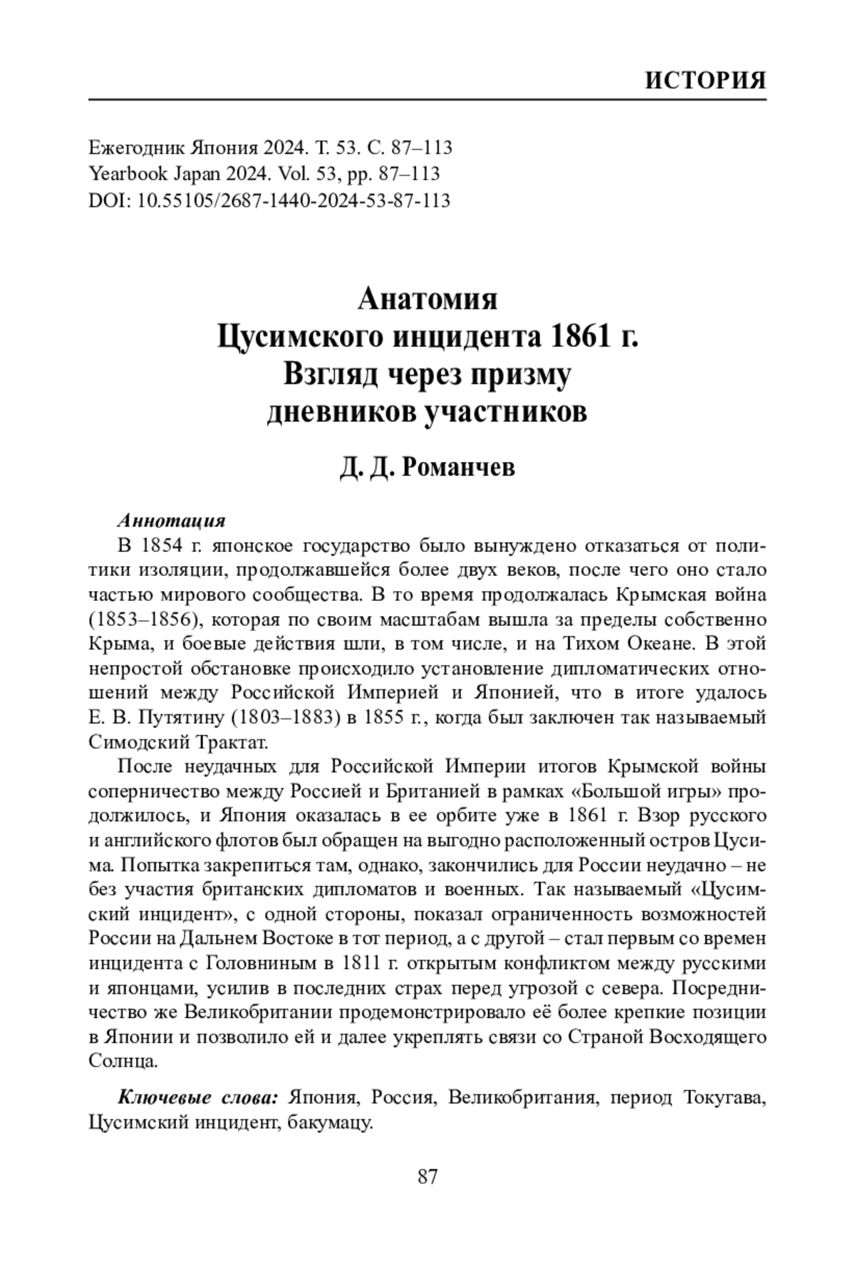 9. Романчев Д. Д. (2024). Феномен «Республики Эдзо» в истории Японии. Попытка сецессии или акт отчаяния? Вестник ИВ РАН. № 1 (27). С. 26-42.