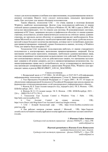 8. Как работает контроль учетных записей // Microsoft. - URL: https://learn.microsoft.com/ru-ru/windows/security/application-security/application-control/user-account-control/how-it-works.