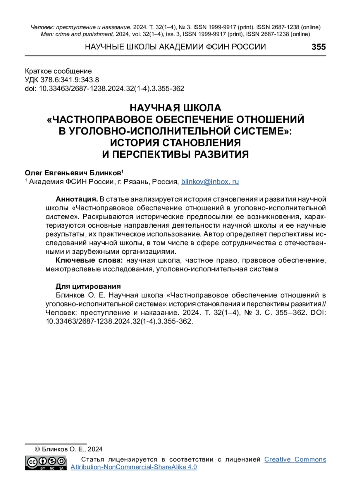 Основание научной школы заложили известные ученые-цивилисты, работавшие в различные периоды становления Рязанской высшей школы МВД СССР (А. Т. Ащеулов, К. Я. Ананьева, И. В. Бондаренко, Г. В. Воронков, Н. И. Карусев, В. В. Меркулов, И. А. Ми- хайлова, В. А. Рыбаков и др.). В рамках кафедральной научно-исследовательской деятельности они по крупицам создавали целостное научное представление о гражданско- правовом статусе лиц, осужденных к лишению свободы, и правовом регулировании общественных отношений, возникающих в сфере исполнения уголовных наказаний, гражданско-правовыми средствами.