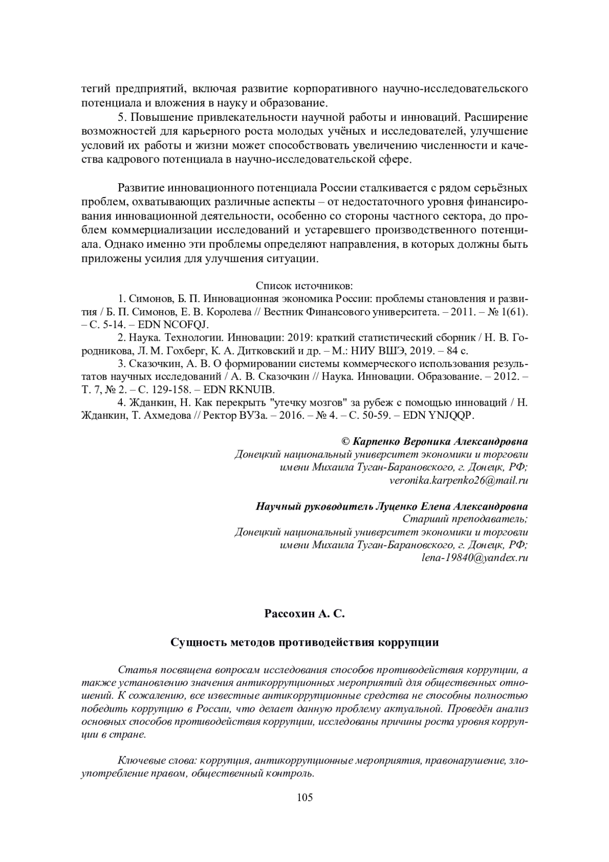 2. Симонова, Е. В. О противодействии коррупции в Российской Федерации / Е. В. Симонова, Е. С. Инкина // Экономическая среда. - 2014. - № 1(7). - С. 106-112. - EDN. EDN: VVIWOX