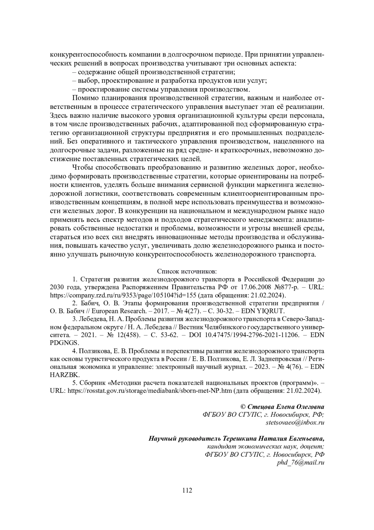 1. Стратегия развития железнодорожного транспорта в Российской Федерации до 2030 года, утверждена Распоряжением Правительства РФ от 17.06.2008 №877-р. - URL: https://company.rzd.ru/ru/9353/page/105104?id=155 (дата обращения: 21.02.2024).