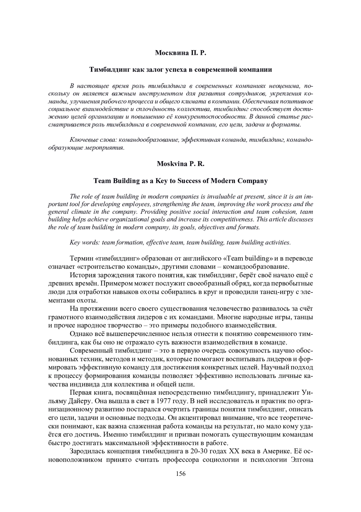 1. Ленская, И. Ю. Преимущества использования командного менеджмента и особенности применения тимбилдинга в процессе стабилизации персонала современных организаций / И. Ю. Ленская // Интернет-журнал Науковедение. - 2017. - Т. 9, № 1. - С. 47. EDN: YMXPAP