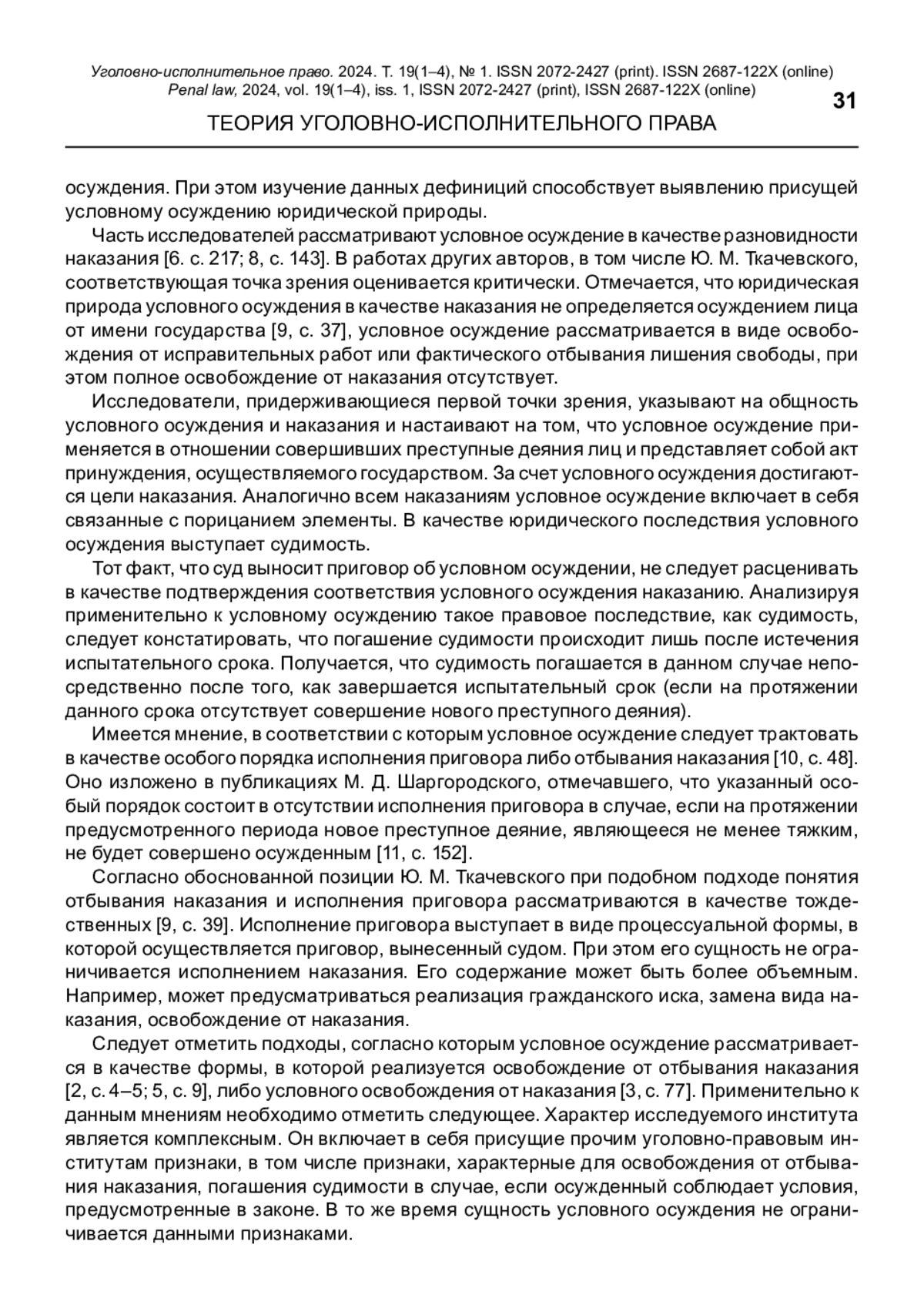 9. Ткачевский Ю. М. Применение условного осуждения // Вестник Московского университета. Сер. 11. Право. 2003. № 3. С. 36-51.