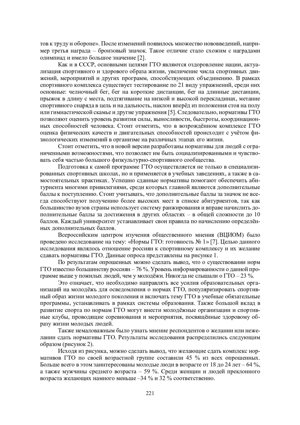 Всероссийский физкультурно-спортивный комплекс «Готов к труду и обороне» на протяжении ряда лет остаётся популярным в сфере физической активности разных слоёв населения, а также привлекает большое внимание многих исследователей и практиков [2; 5; 6].