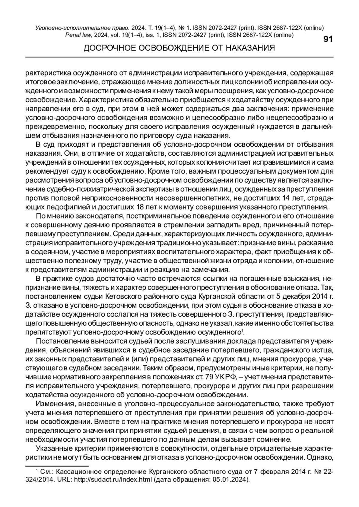 7. Кургина Т. В. Снятие судимости с лица в период условно-досрочного освобождения от отбывания наказания: практика против теории // Уголовно-исполнительная система: право, экономика, управление. 2018. № 3. С. 18-22. EDN: XNZUMX