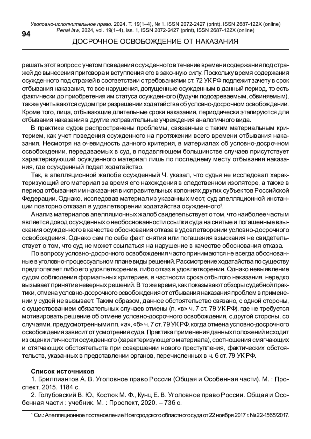 1. Бриллиантов А. В. Уголовное право России (Общая и Особенная части). М.: Проспект, 2015. 1184 с. EDN: HKIXSF
