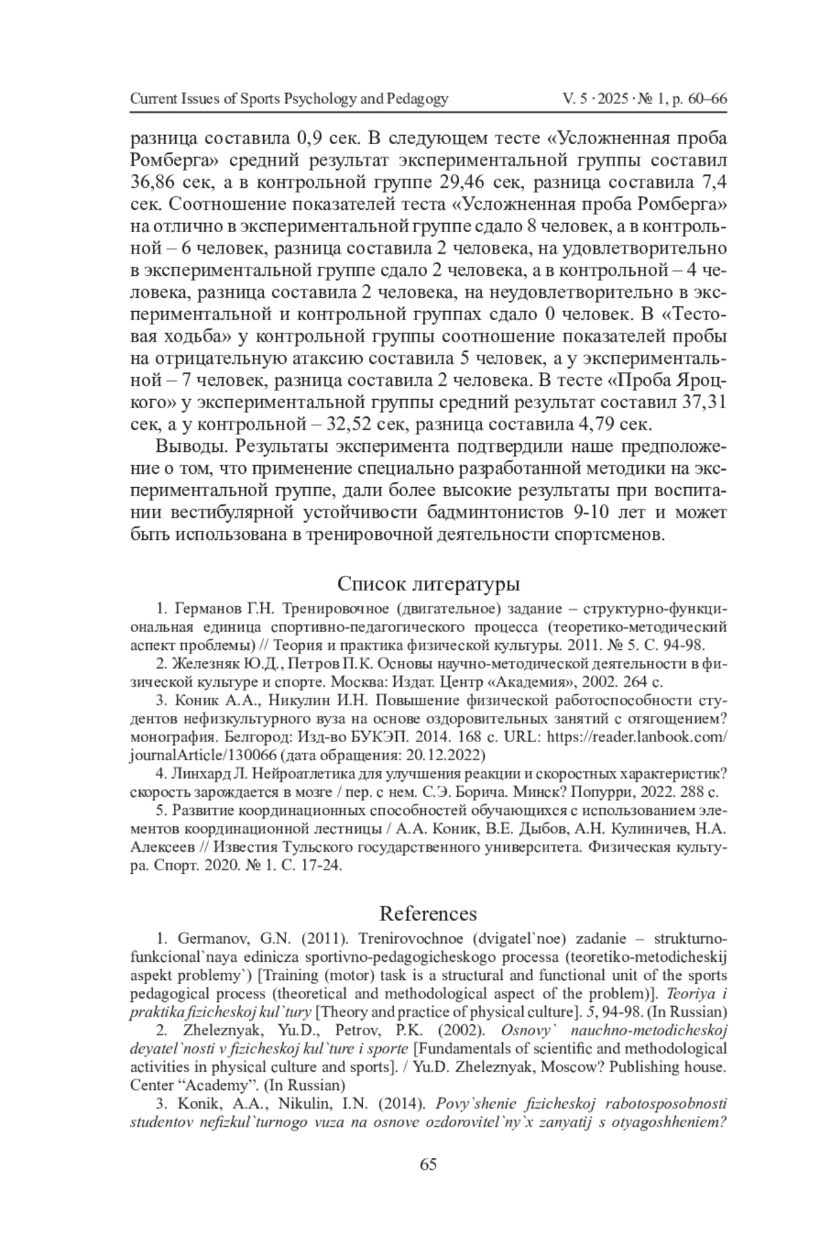 1. Германов Г. Н. Тренировочное (двигательное) задание - структурно-функциональная единица спортивно-педагогического процесса (теоретико-методический аспект проблемы) // Теория и практика физической культуры. 2011. № 5. С. 94-98. EDN: NUJUQL