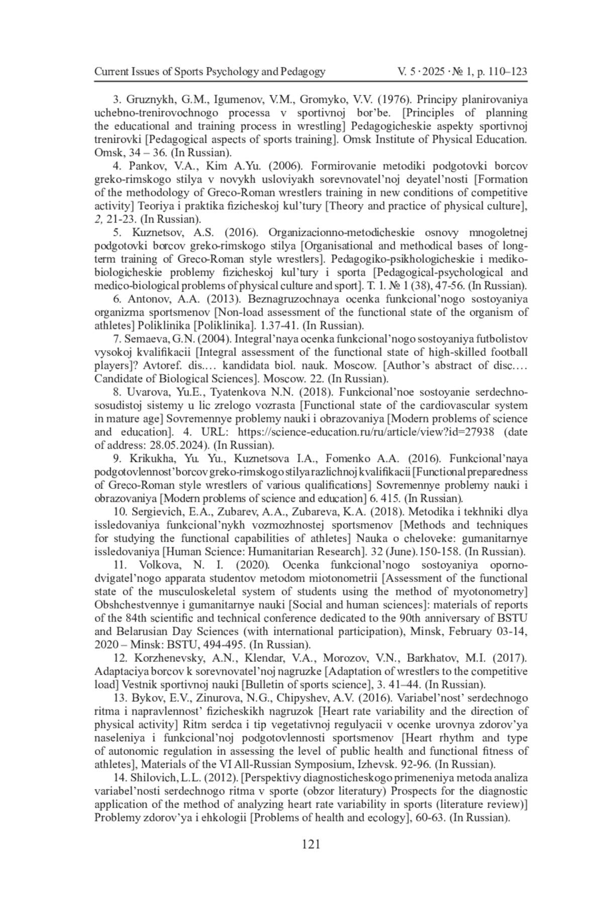 5. Кузнецов А. С. Организационно-методические основы многолетней подготовки борцов греко-римского стиля: монография // Педагогико-психологические и медико-биологические проблемы физической культуры и спорта. 2016. Т. 1. № 1 (38). С. 47-56. EDN: VRNYLX