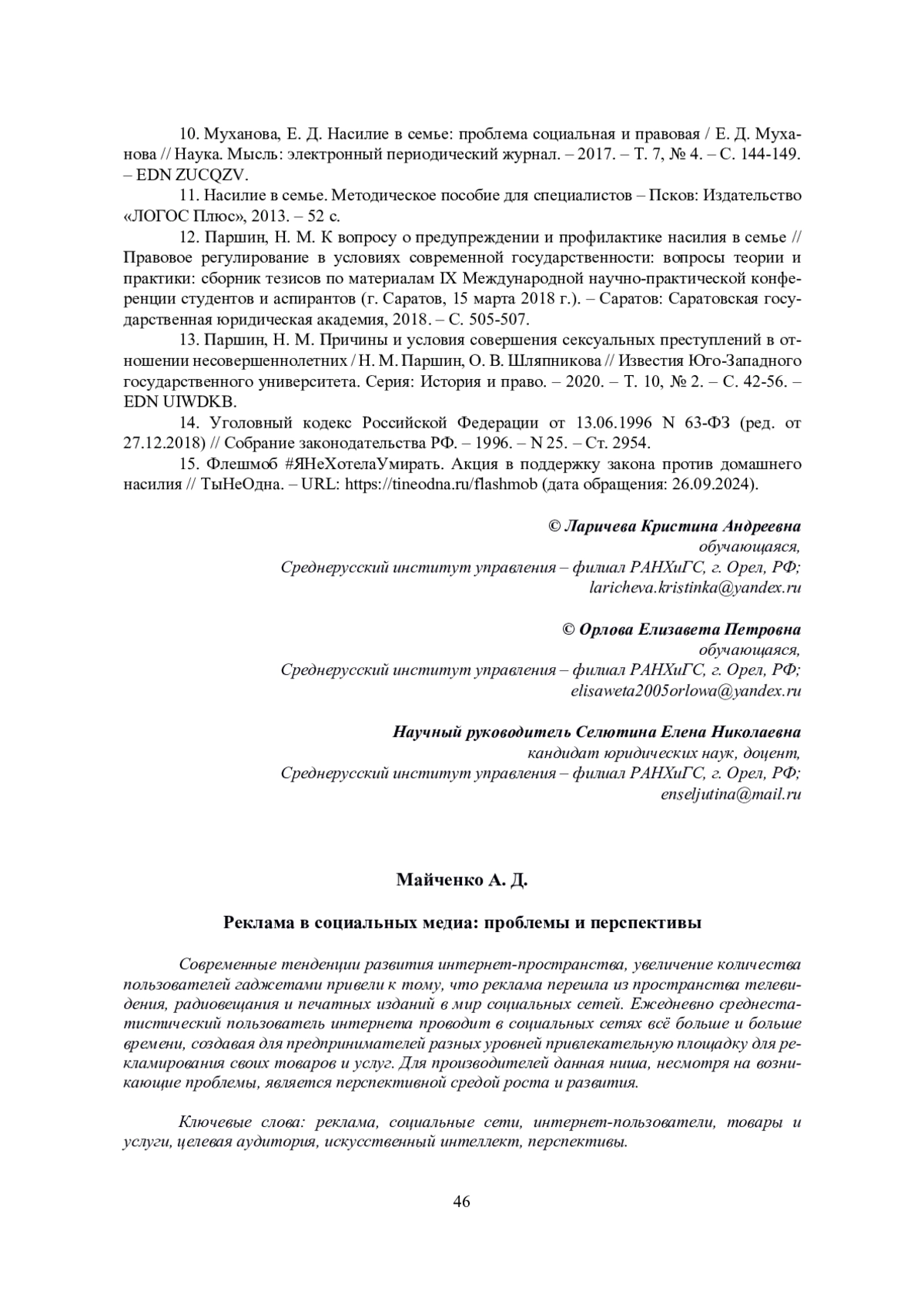 Современные тенденции развития интернет-пространства, увеличение количества пользователей гаджетами привели к тому, что реклама перешла из пространства телевидения, радиовещания и печатных изданий в мир социальных сетей. Ежедневно среднестатистический пользователь интернета проводит в социальных сетях всё больше и больше времени, создавая для предпринимателей разных уровней привлекательную площадку для рекламирования своих товаров и услуг. Для производителей данная ниша, несмотря на возникающие проблемы, является перспективной средой роста и развития.